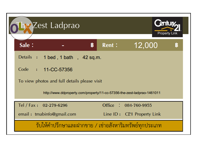 11-CC-57356 The Zest Ladprao For Rent