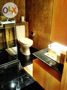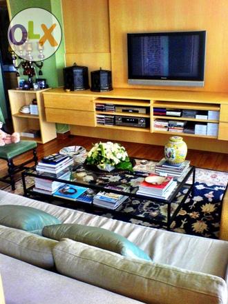 Fully & luxuriously furnished with 2 bed rooms and 2 bath rooms. The apartment includes: The unit is about 120 sqm. – Imported maple partitions in chinoisserie nuveau style, walls and some part of the ceilings, One big sofa bed with silk pillows, One big newly-polished antique chinese cabinet from Ching dynasty (200 years old), LCD flat screen TV (panasonic) 42″ in Living room, LCD flat screen TV (Hitachi) 26″ in bed room, One JVC Stero combo and DVD player in the bed room. Marble and granite (black and white style) in both bath rooms, Rain showers in both bathrooms, Maple and granite kitchen with Teka oven, stove, microwave and stove ventilation hood, as well as big refridgerator (all in silver which is matched well with Black granite stone and Maple wood). Kitchen dinnerwares and utensils (silver spoon forks knives wood board, dishes.