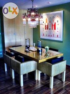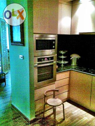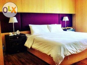 Fully & luxuriously furnished with 2 bed rooms and 2 bath rooms. The apartment includes: The unit is about 120 sqm. – Imported maple partitions in chinoisserie nuveau style, walls and some part of the ceilings, One big sofa bed with silk pillows, One big newly-polished antique chinese cabinet from Ching dynasty (200 years old), LCD flat screen TV (panasonic) 42″ in Living room, LCD flat screen TV (Hitachi) 26″ in bed room, One JVC Stero combo and DVD player in the bed room. Marble and granite (black and white style) in both bath rooms, Rain showers in both bathrooms, Maple and granite kitchen with Teka oven, stove, microwave and stove ventilation hood, as well as big refridgerator (all in silver which is matched well with Black granite stone and Maple wood). Kitchen dinnerwares and utensils (silver spoon forks knives wood board, dishes.
