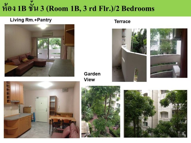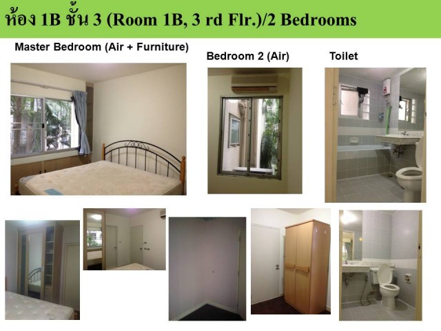 Building : 1ฺB, 3rd Flr., 2 Bedrooms 1 Toilet, Area 47 m2 (Fully Furnished with air conditioners and furniture)