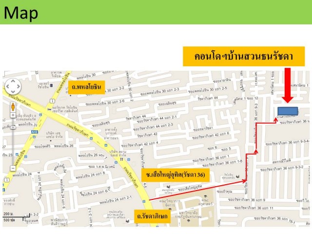 Location : Ratchada Soi 36 (this condo is very convenient to transport because it can be accessible from Ratchada Rd., Ladprao Rd. or even Paholyothin Rd.)