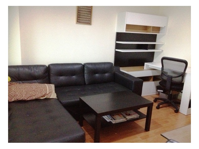 38Sqm. 1 Bed Room with IKEA full furnished, for 1) TV ,2)bed, 3)fridge, 4)microwave, 5)dining table 6)balcony,7)sofa, 8)cupboard