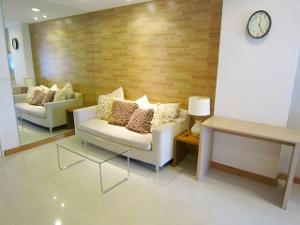 This is one of the charming decorated 1 bedroom unit located at Sukhumvit 50. 42 sqm in size and is on the top 8th floor with city view. The wall is covered with wooden wallpaper with luxurious living area and fully equipped applaince built-in kitchen ready for the tenant to enjot cooking!