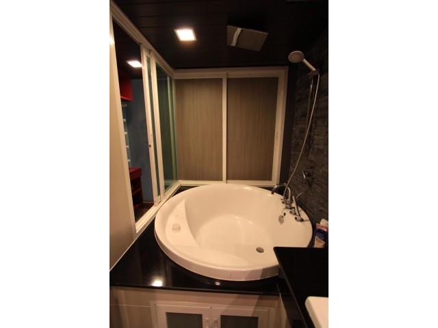 48" LED smart TV, Microwave, Fridge, Washing machine, Rain shower, Big round tub